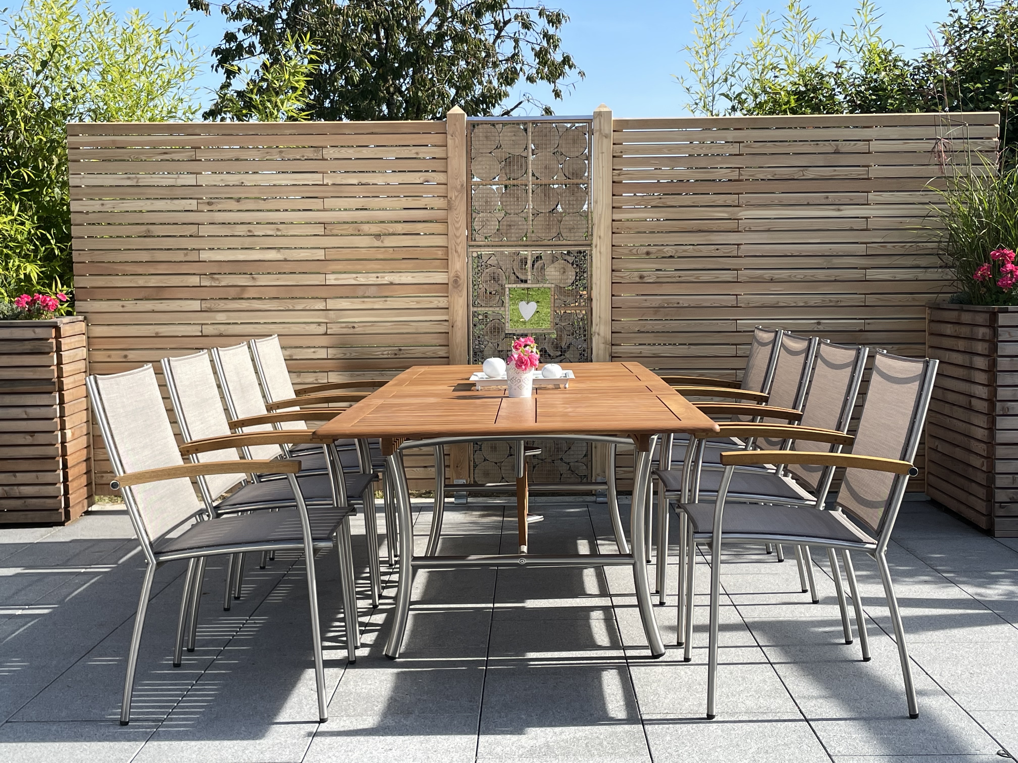 Ein Materialmix von Edelstahl und europäischer Robinie garantieren ein