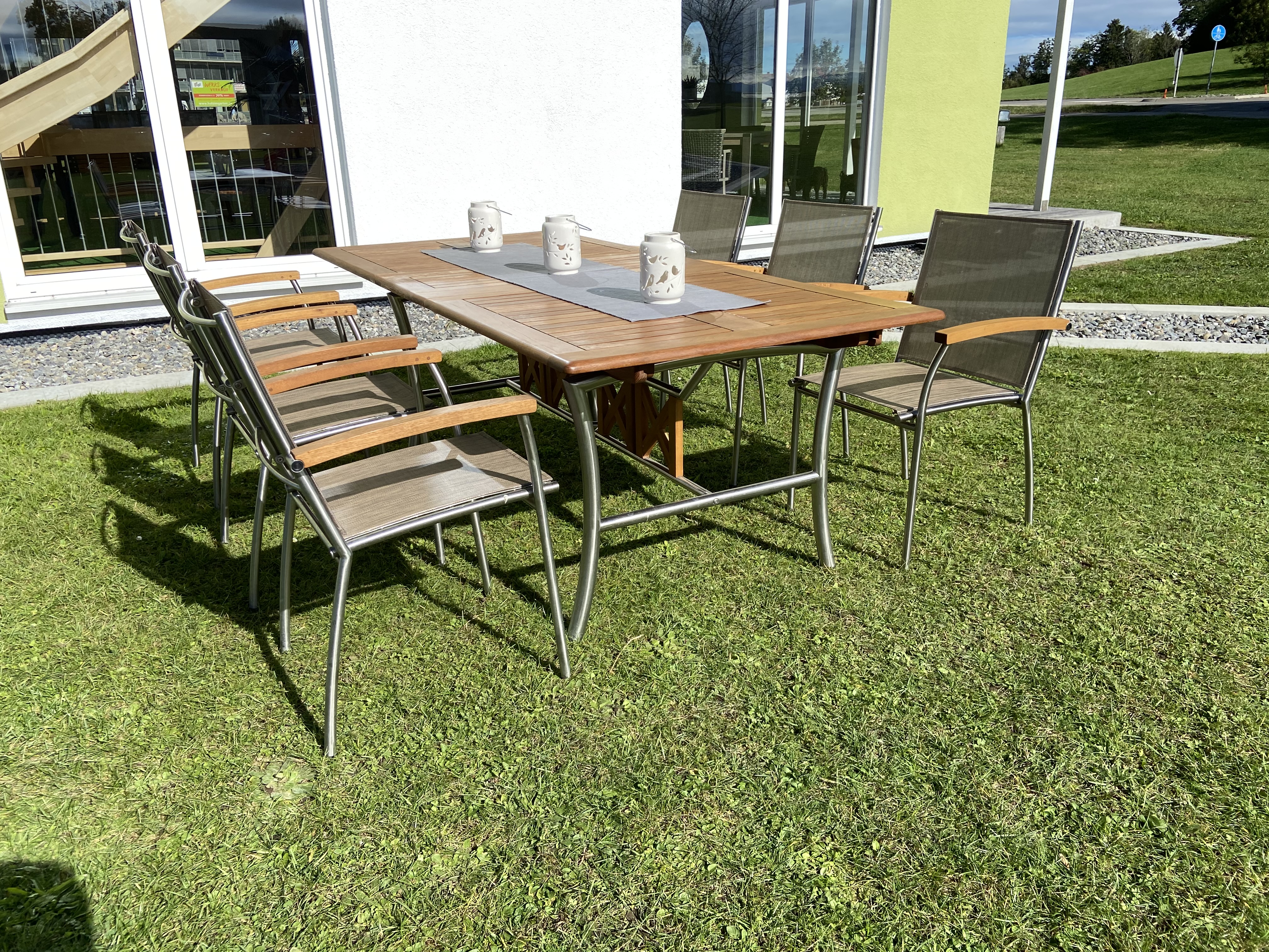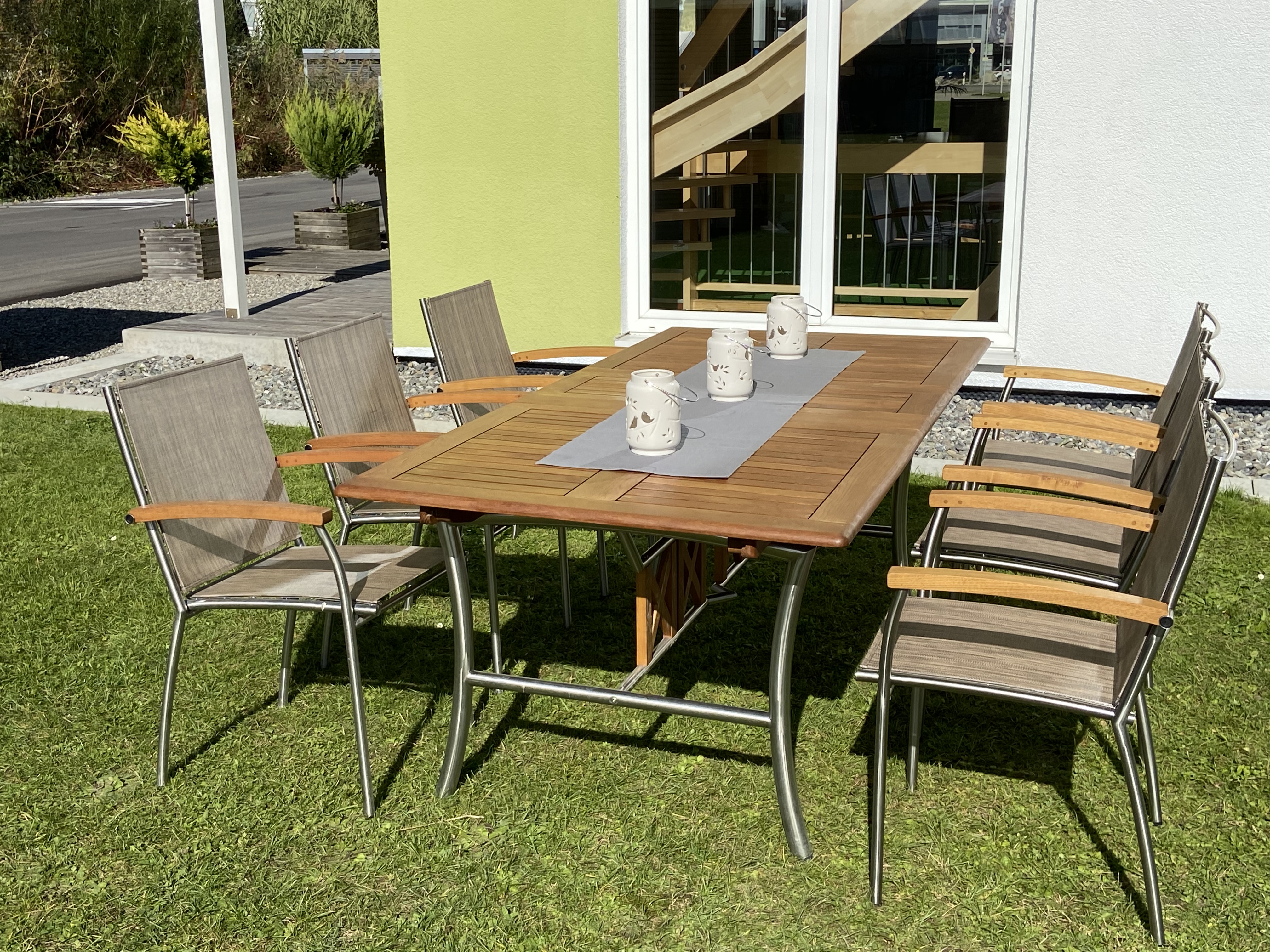 Gartenmöbel Set Robinienholz Edelstahl Kombination :