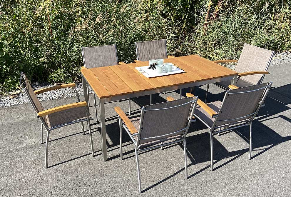 Robinie Set: Tisch 180-250cm + 6 Sessel Robinie Set: Tisch 180-250cm + 6 Sessel