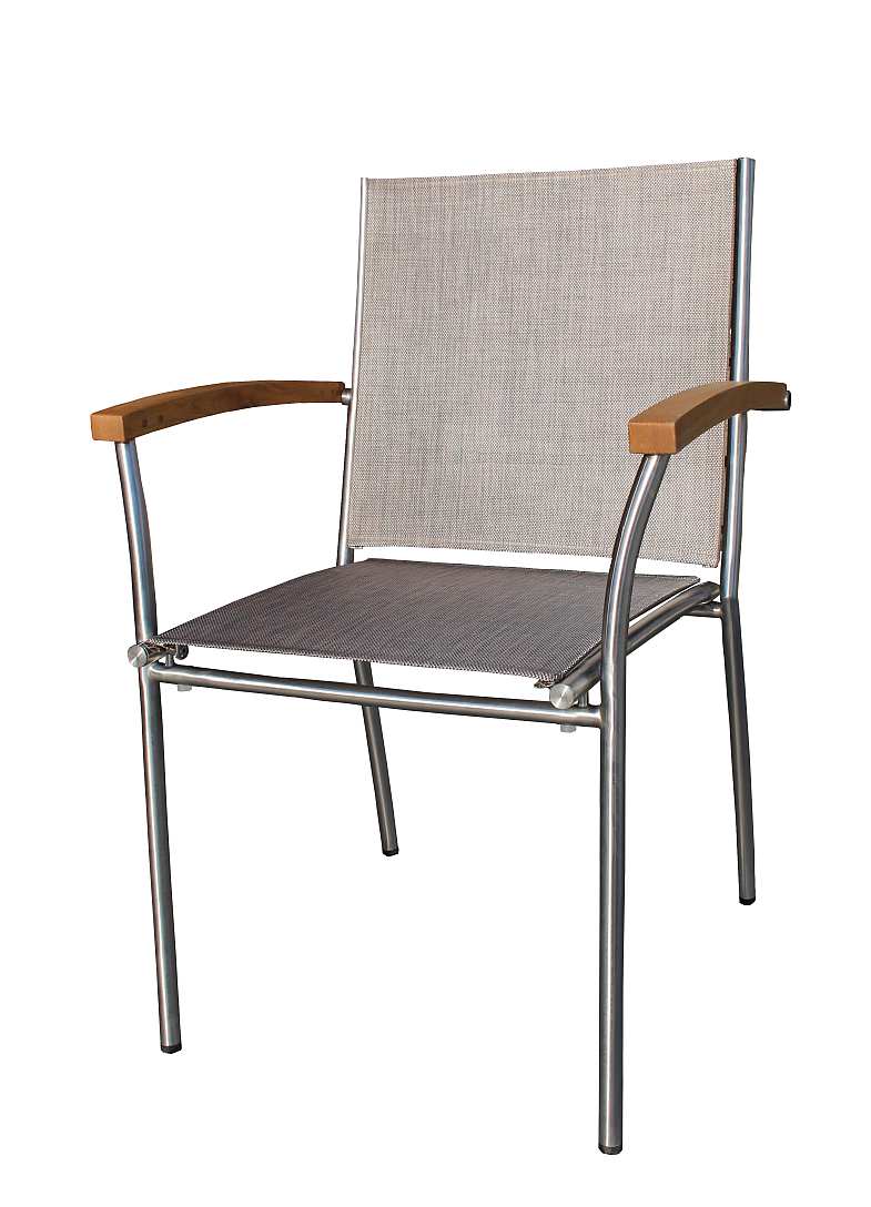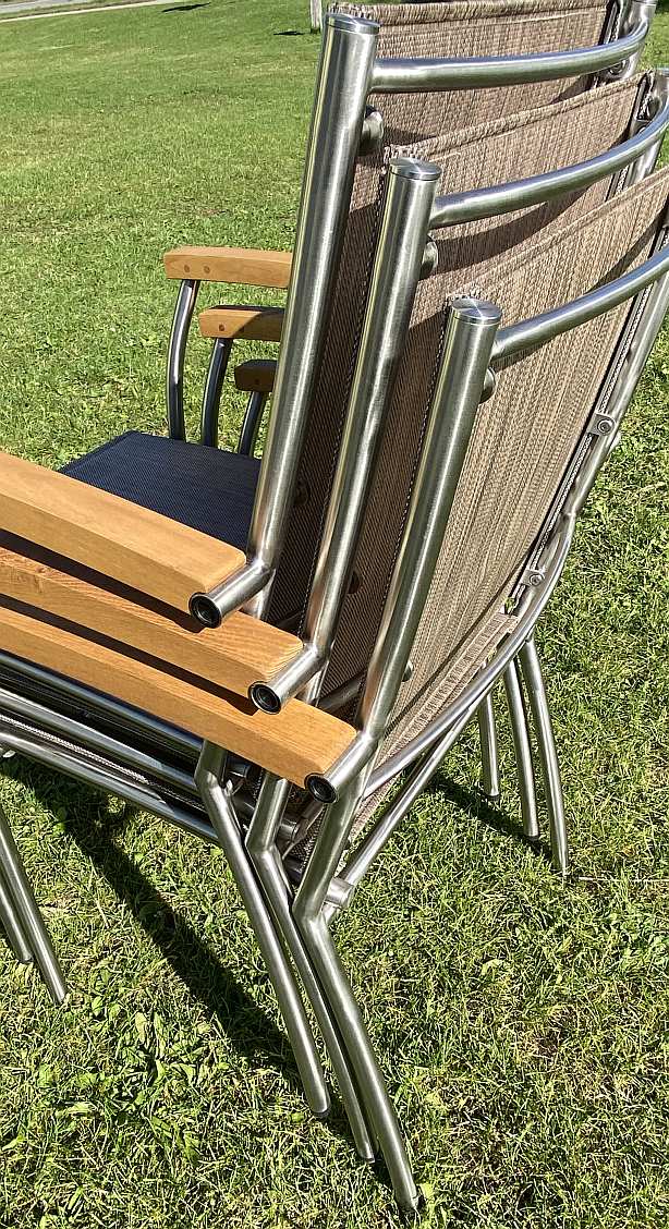 Stapelsessel aus Robinienholz / Textilengewebe / Edelstahlgestell