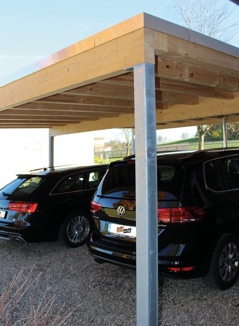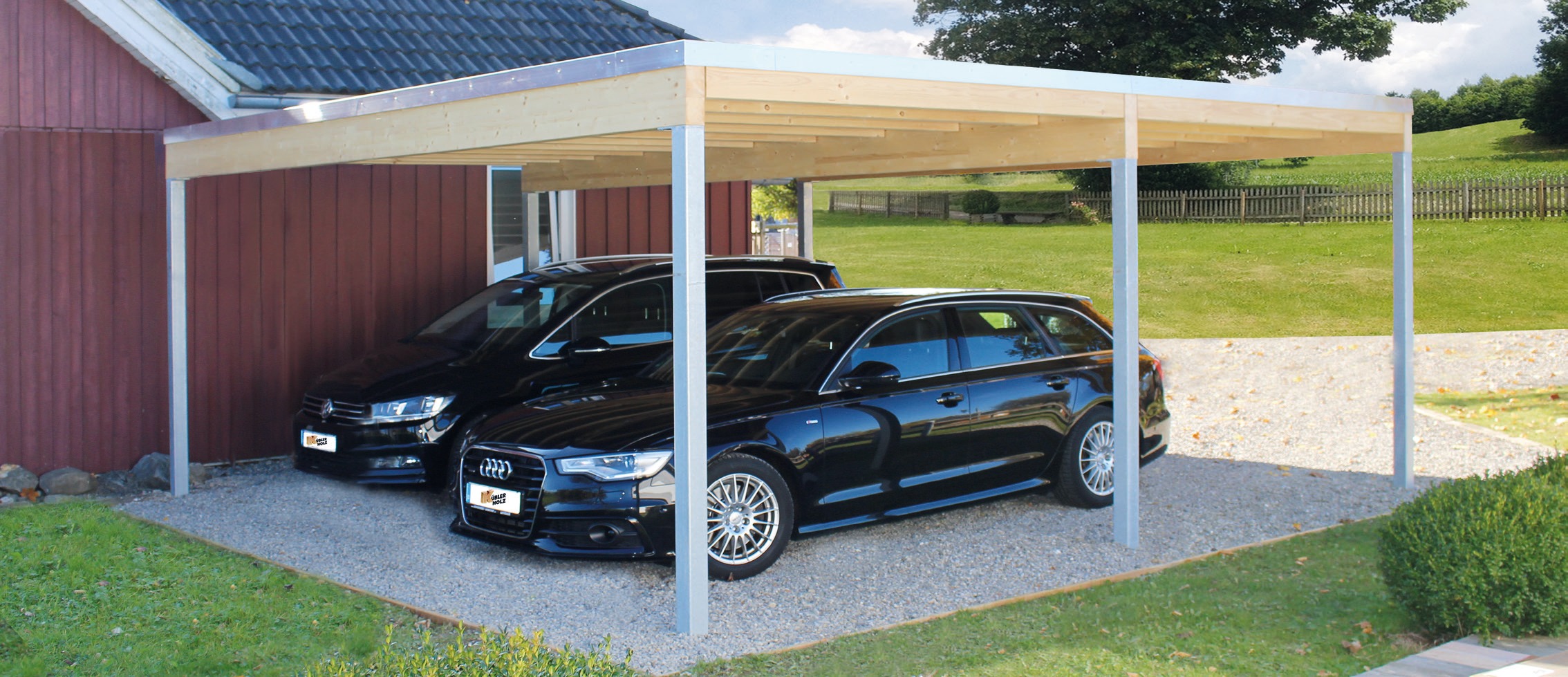Mit der KUBUS FLEX Serie lässt sich ein Carport als Einzel- oder