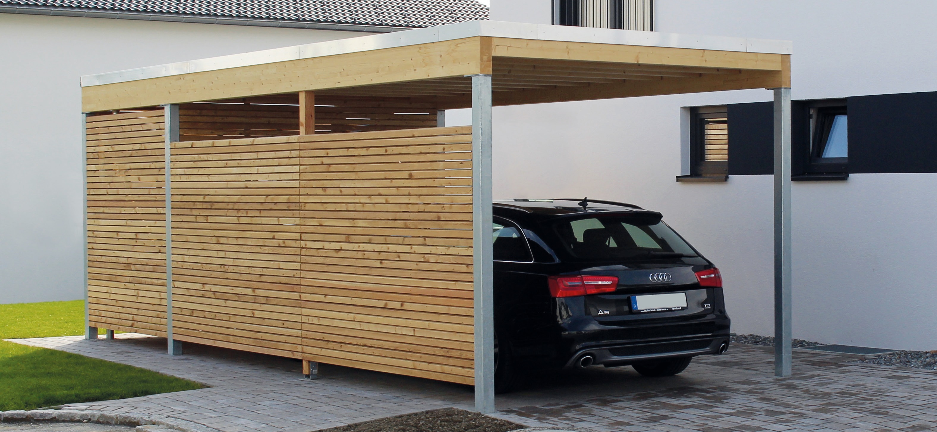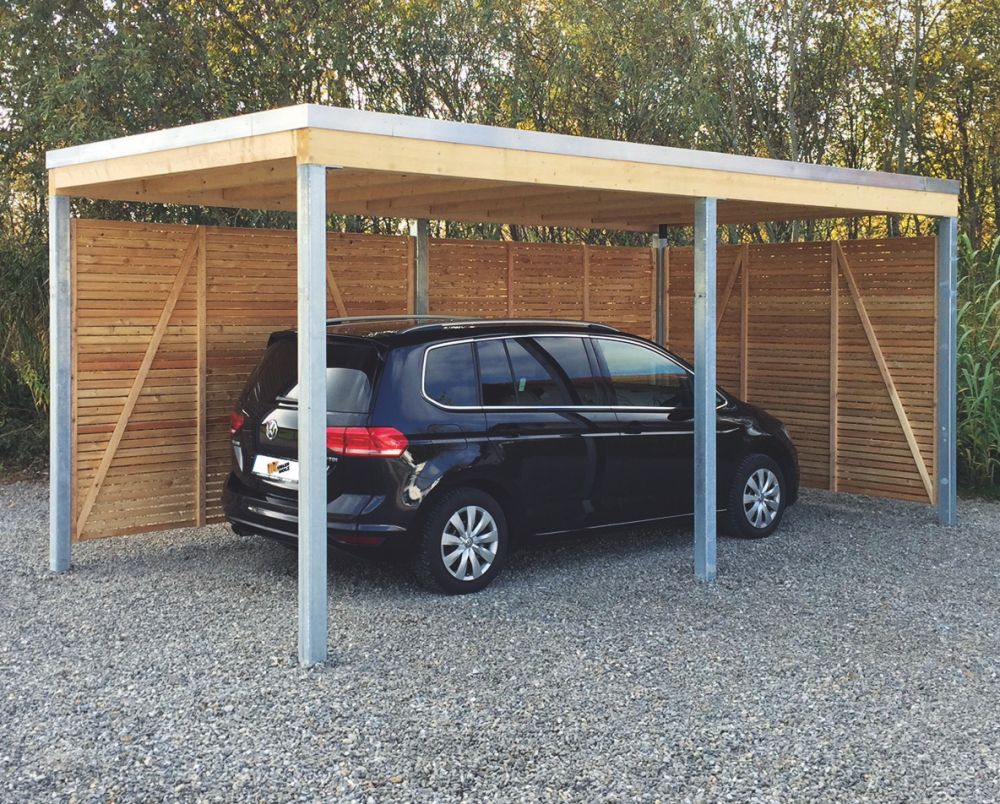Die Carports können mit Sichtschutz-Elementen verkleidet werden.