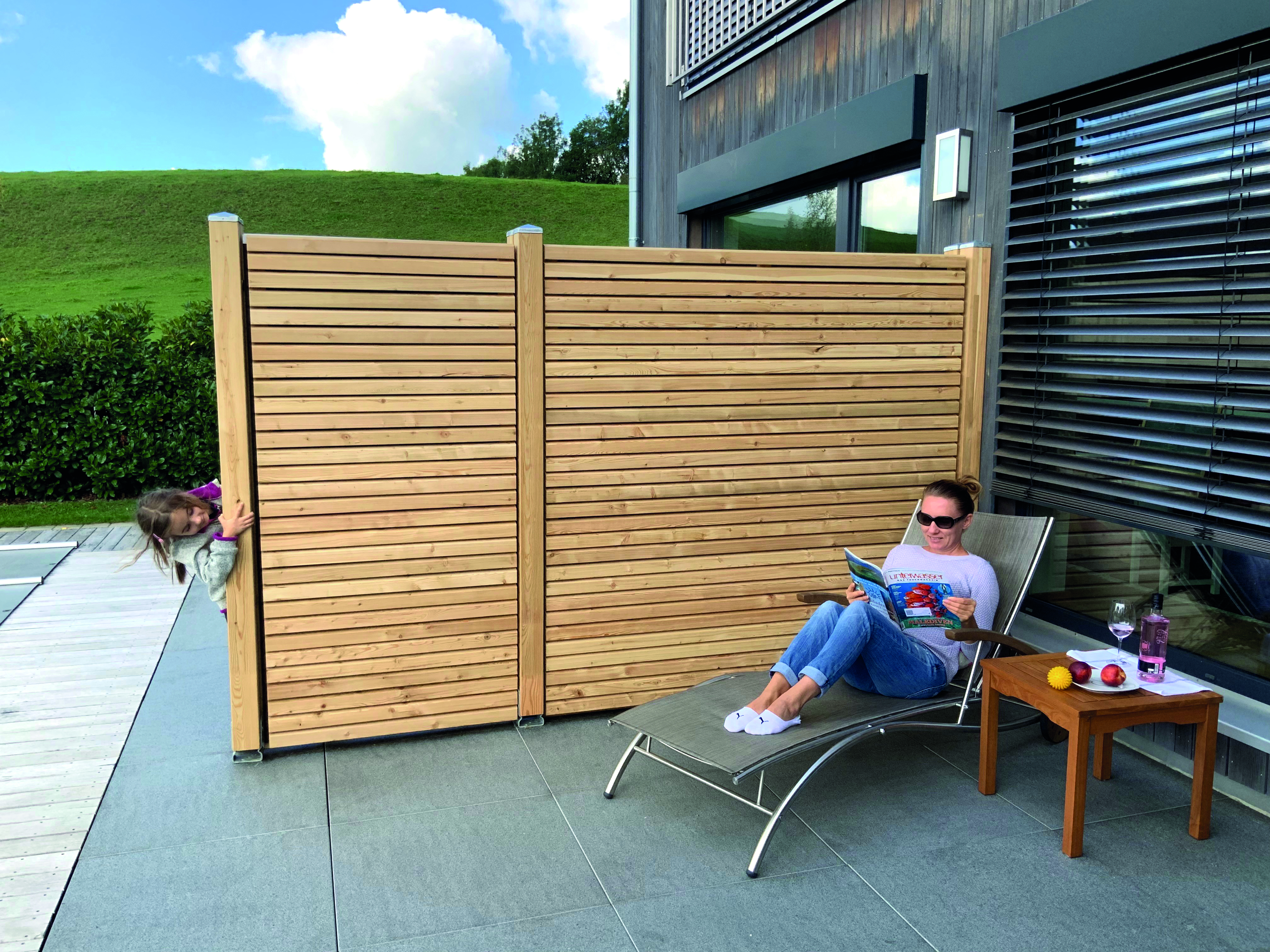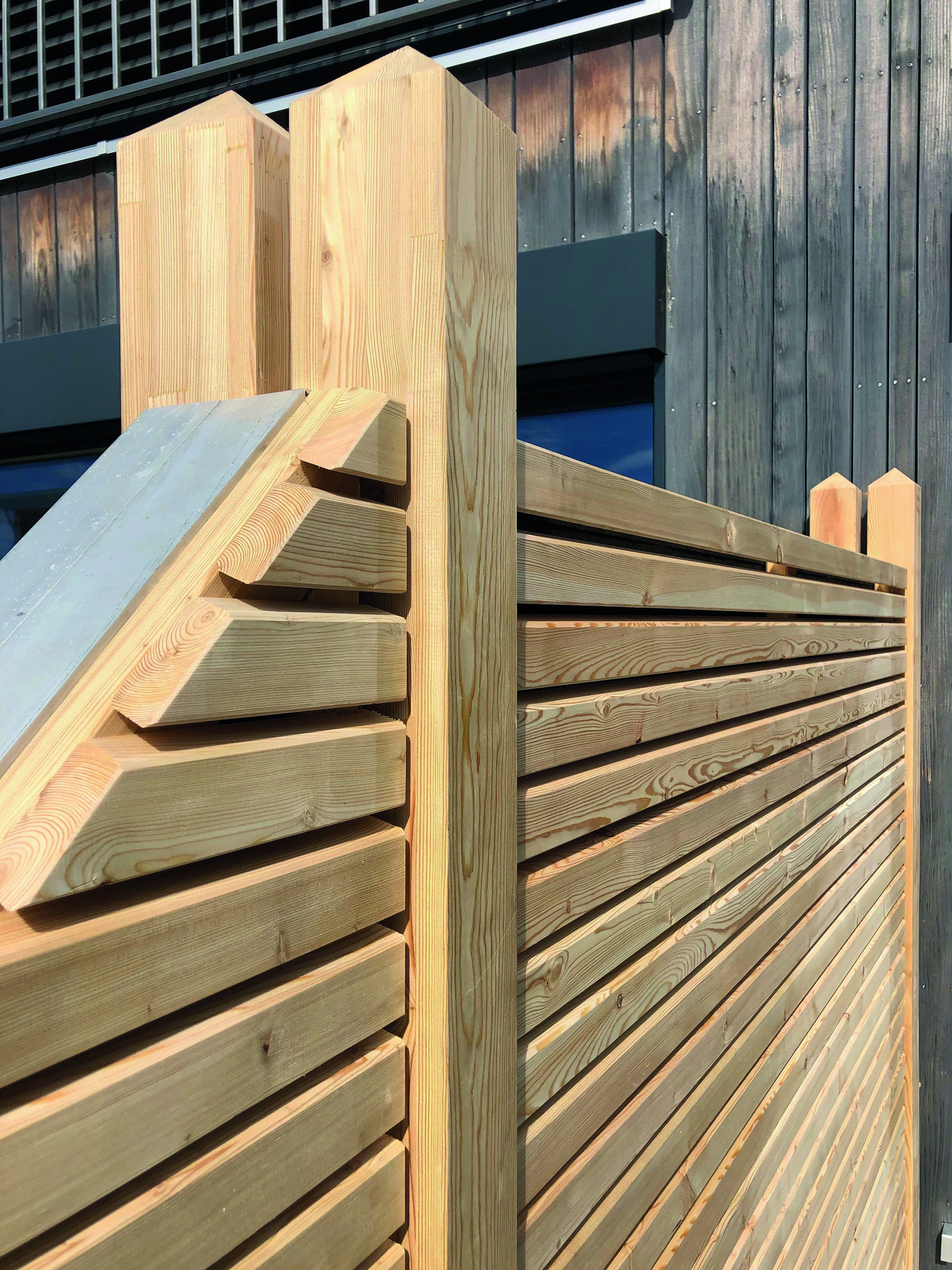 Elementen wie der Serie Ambiente oder dem Boden-Deckel Element aus Lärche