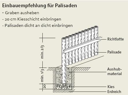 Gibt es Einbauempfehlungen für Palisaden im Erdbereich?