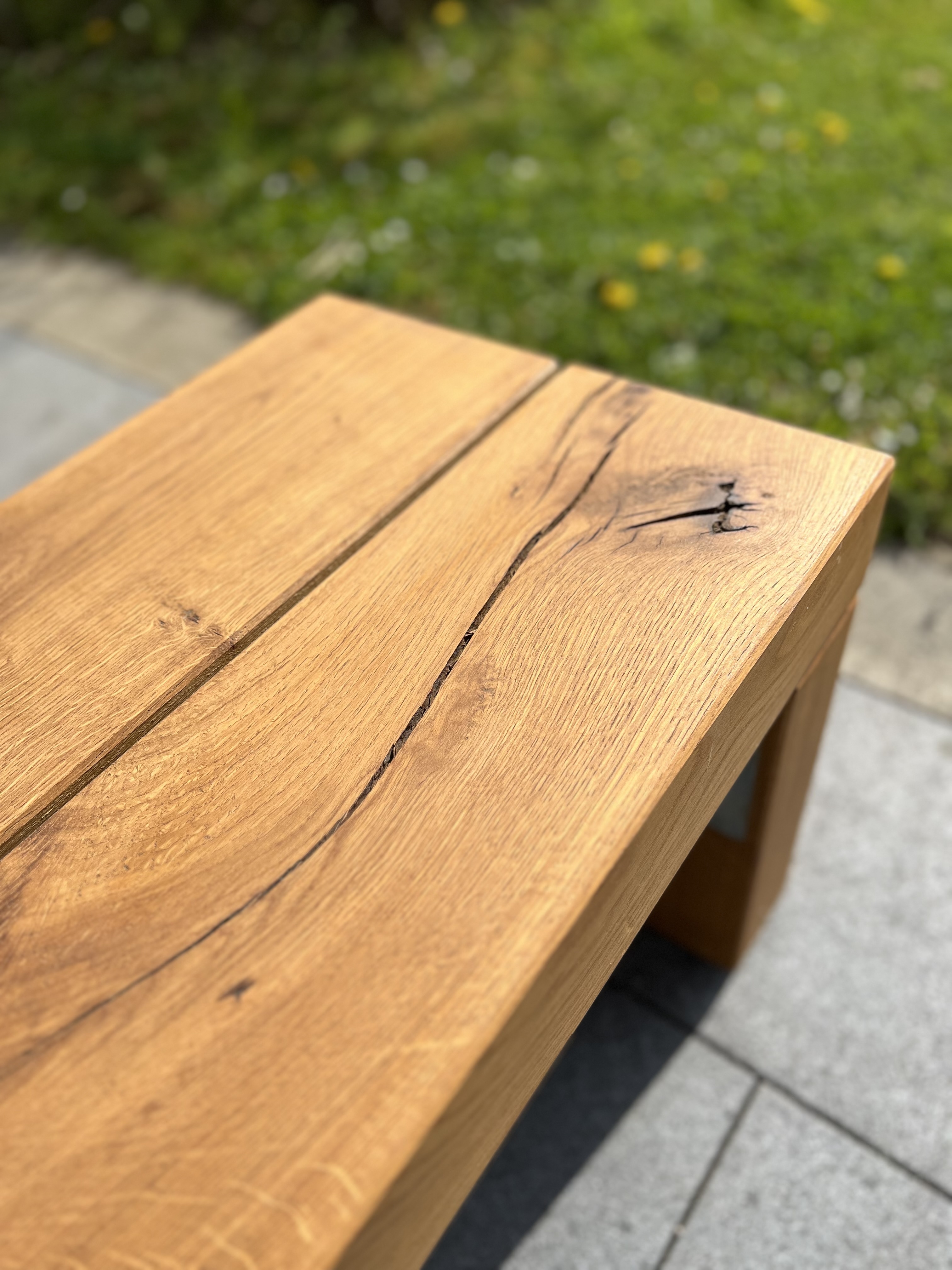 Massives, hochwertig geöltes Eichenholz; Stahlteile hochwertig feuerverzinkt.