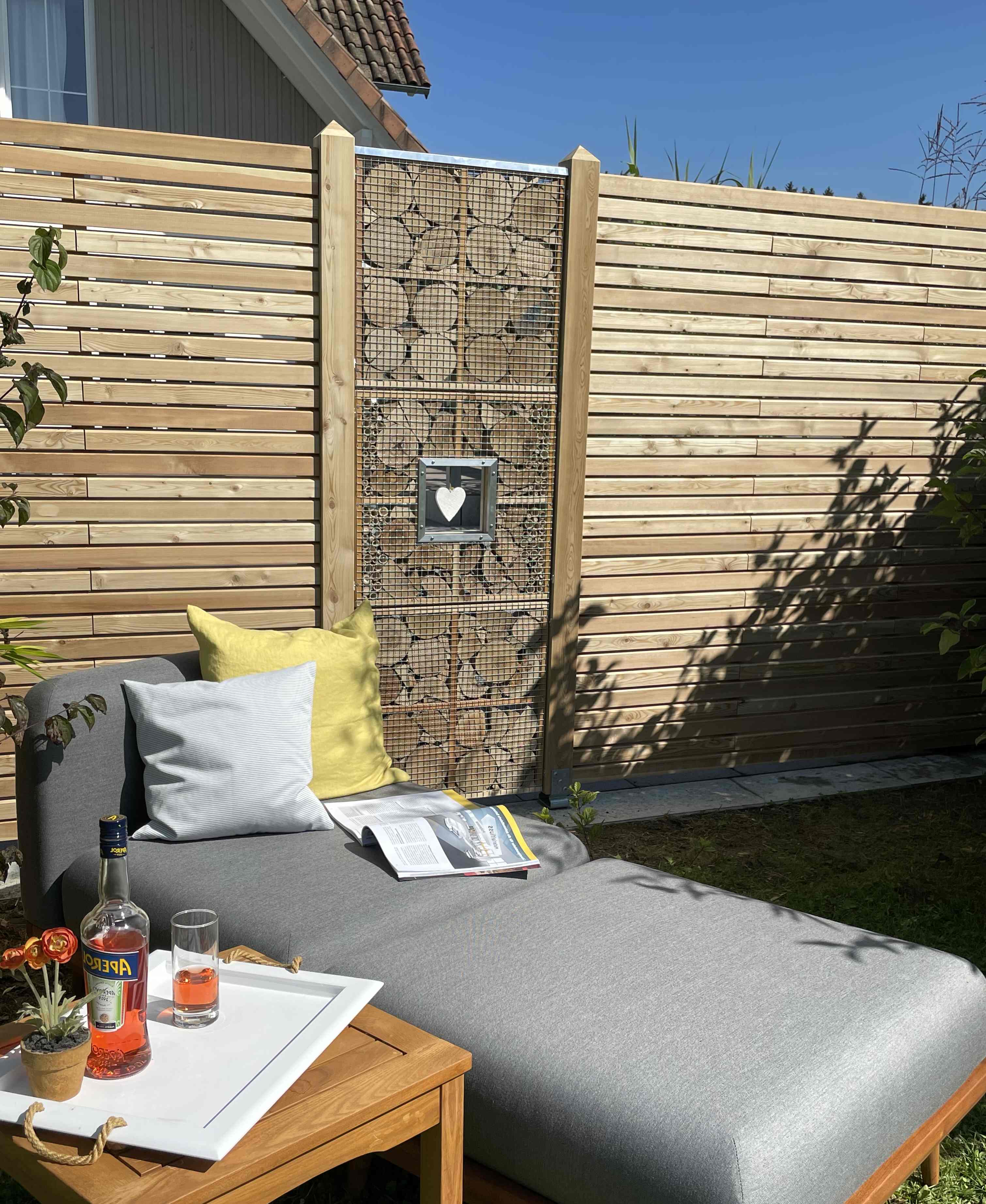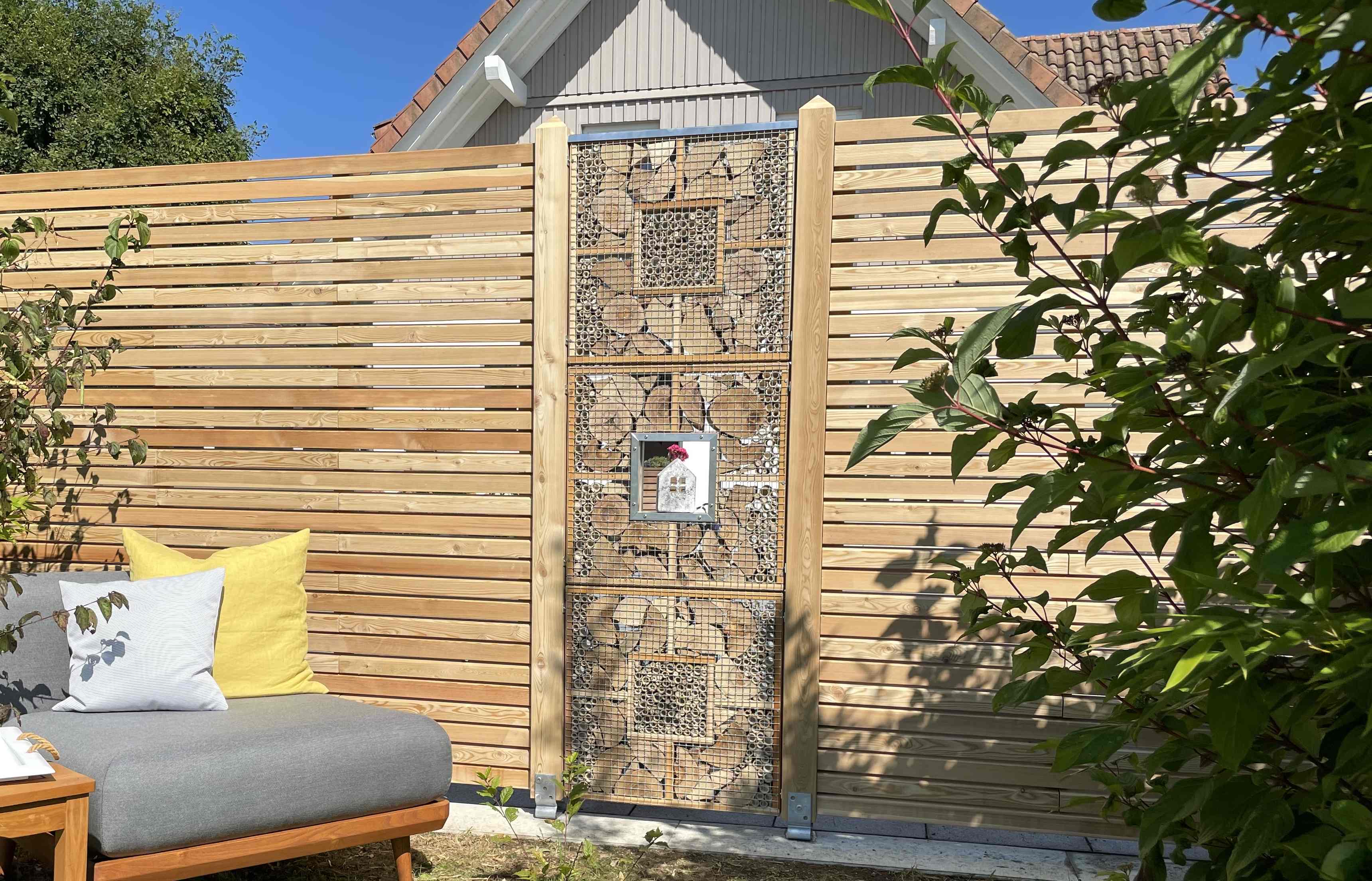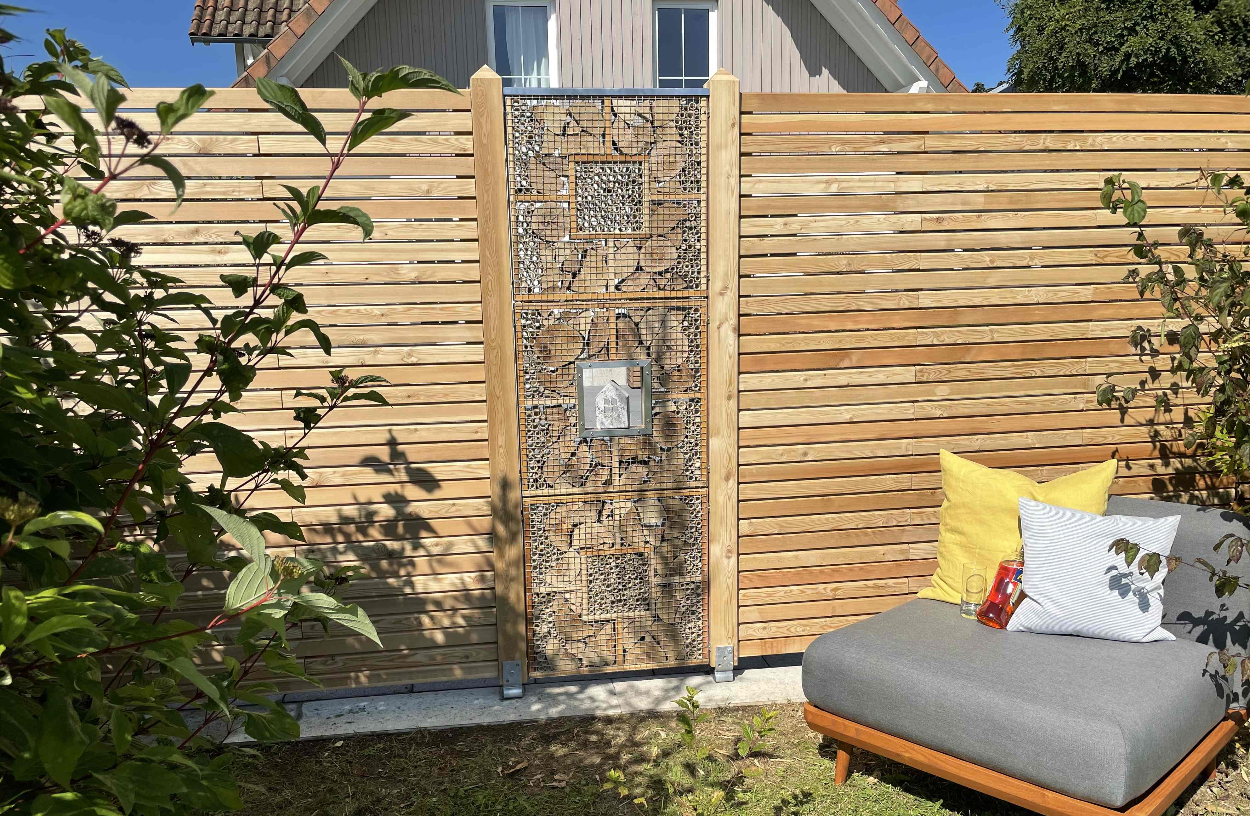 APIARY R lässt sich problemlos in Ihre Sichtschutzwand integrieren.
