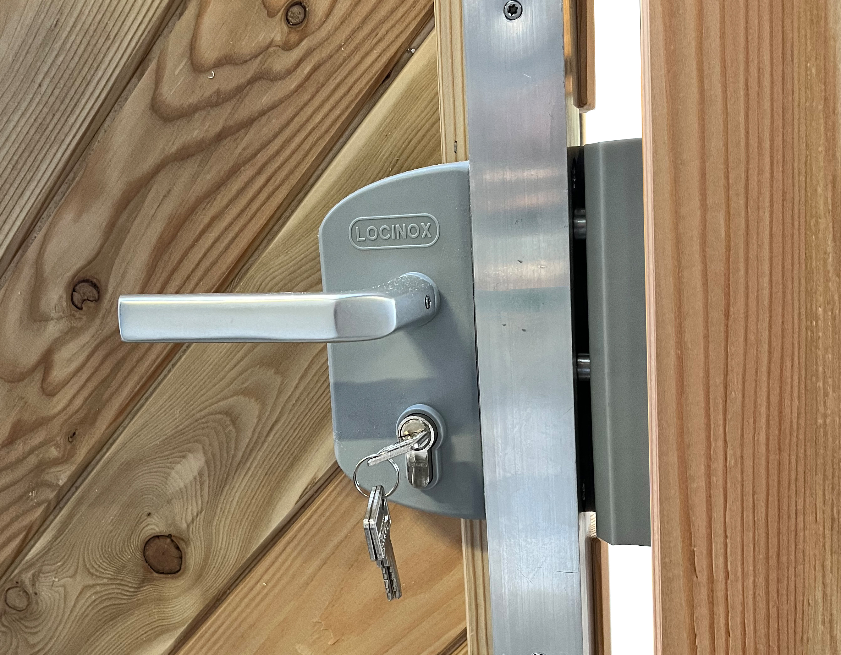zugehörigem Drücker und Schlosskasten ausgeliefert.
