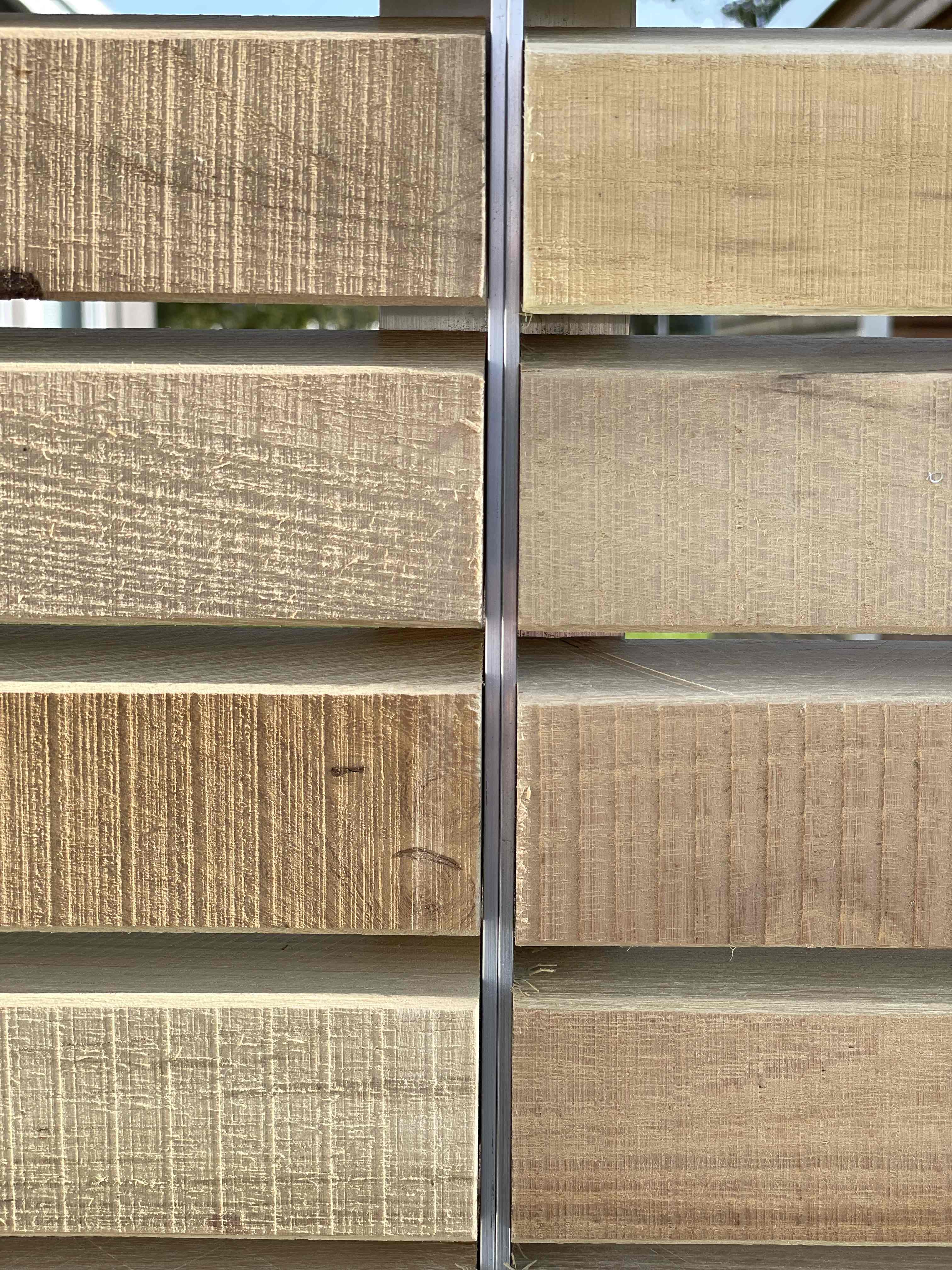Diese charakteristischen Sägespuren verleihen dem Holz eine besonders